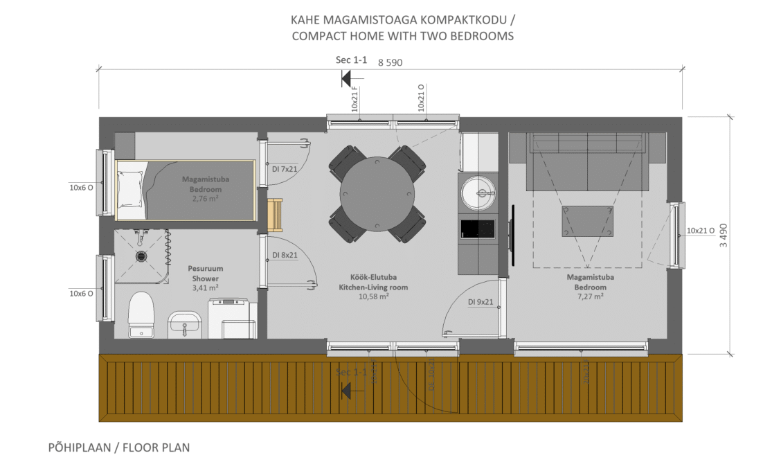 Kõik variandid on loodud pakkuma läbimõeldud planeeringut ja hubast atmosfääri, säilitades samas kompaktsuse ja paindlikkuse.
