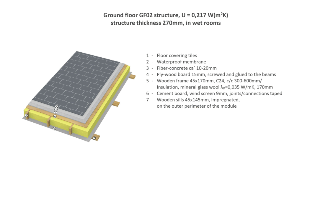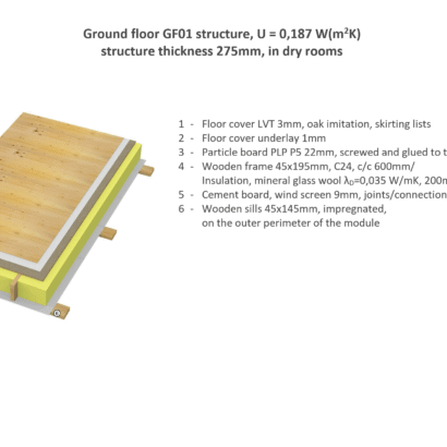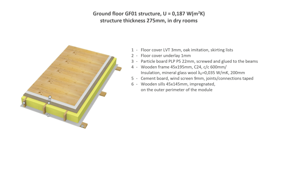 Standardtoodetes kasutame kvaliteetset mineraalvilla (λ = 0,035 W/m·K), mis tagab moodulmajadele suurepärased soojustehnilised omadused: